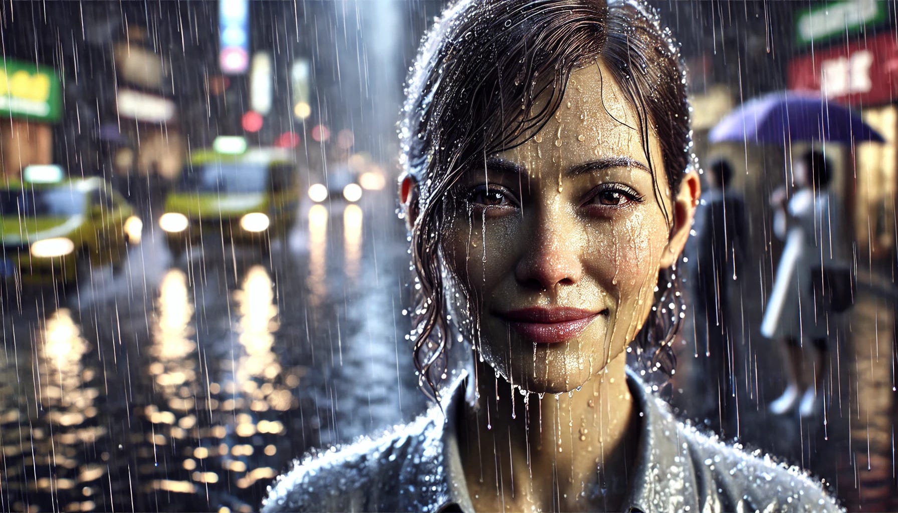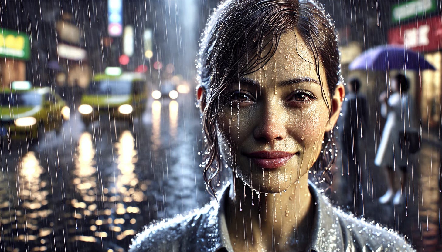 Dež solza je prekrival njen nasmeh, ko je premočeno mačko opazovala, ki se je domov vračala.