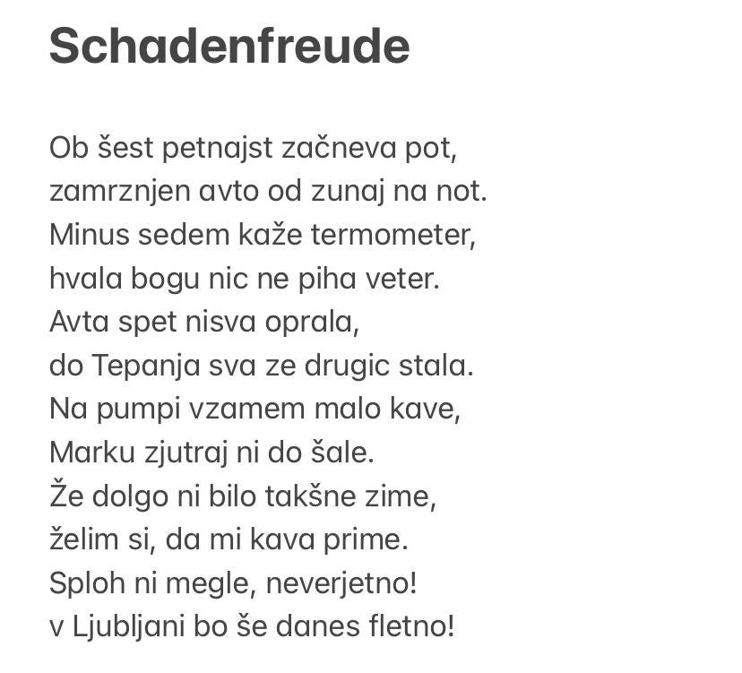 Kot zanimivost in z njenim dovoljenjem. Dan preden je zbolela, je oseba, ki je glavna tema zadnje objave v Utrinkih iz preteklosti, izkoristila napad kreativnosti. To je prva pesem, ki jo je zjutraj, okoli 6h, spisala v avtu.